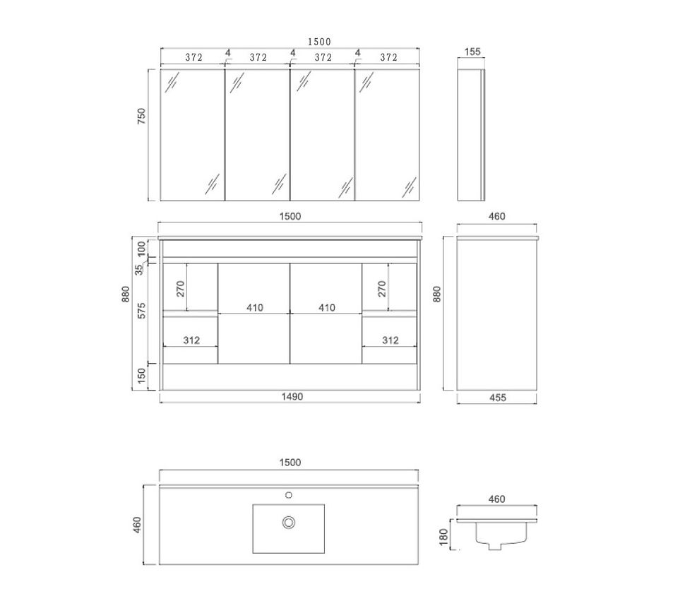Otti - MA1500BCT - Marlo Wall Hung Vanity Including Ceramic Top #157